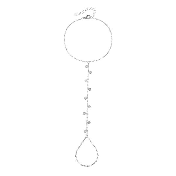 צמיד משולב טבעת עשוי כסף אמיתי 925 משובץ אבני זרקון אורך 15+5 סמ