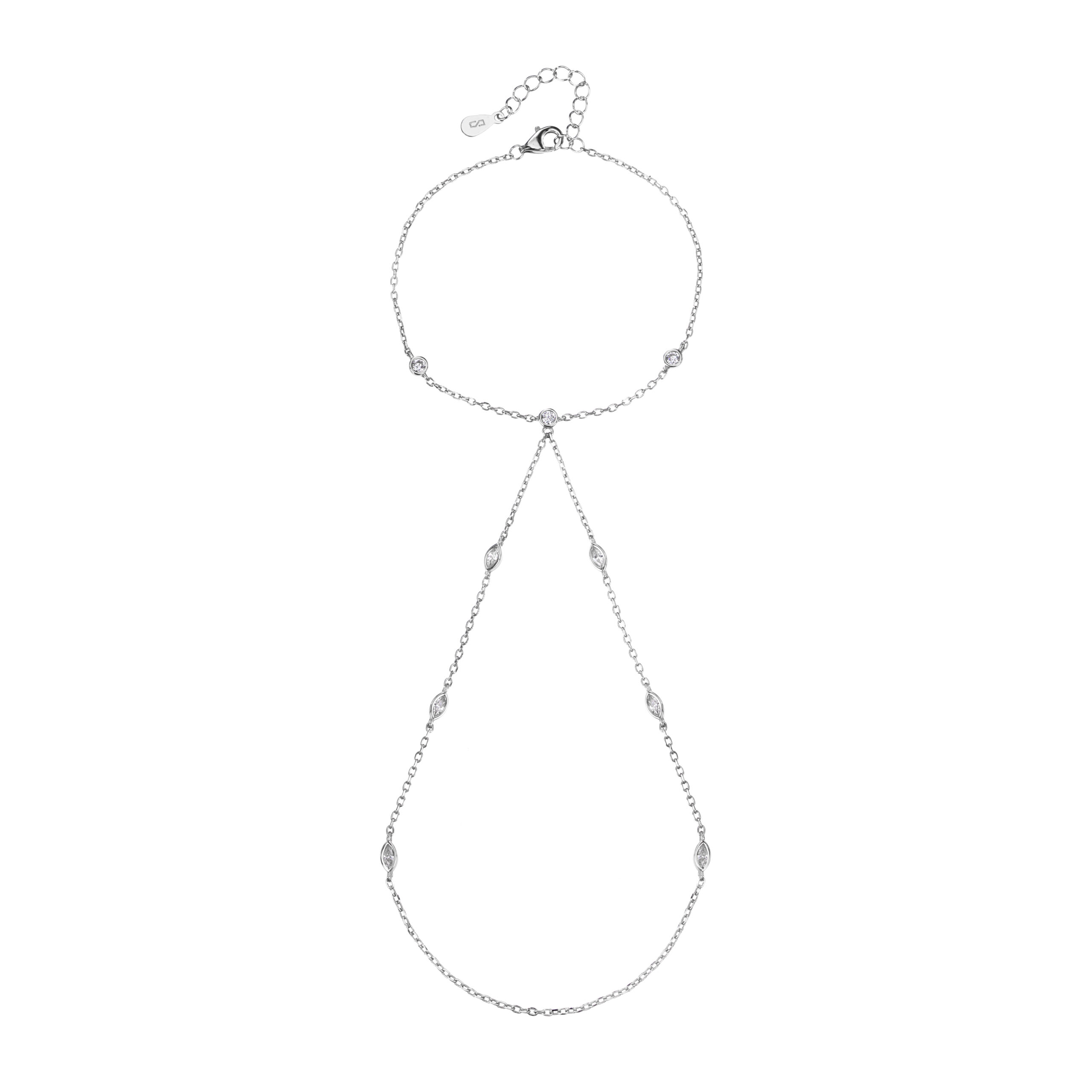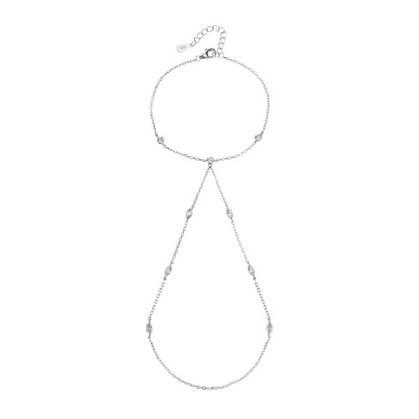 צמיד משולב טבעת עשוי כסף אמיתי 925 משובץ אבני זרקון אורך 15+5 סמ